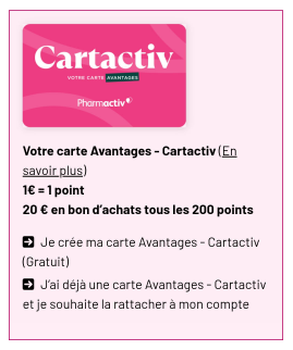 *Selon les conditions du programme de fidélité Cartactiv. Hors médicaments, promotions et produits non éligibles.